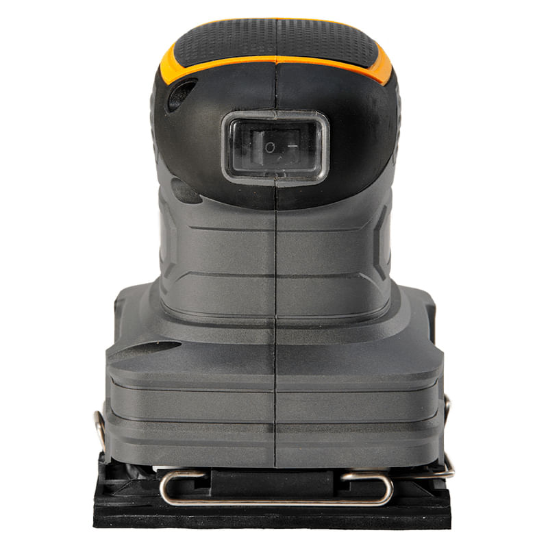 Mais praticidade no dia a dia: O sistema de grampos facilita a troca das lixas, enquanto o botão liga/desliga selado contra pó prolonga a vida útil da ferramenta.