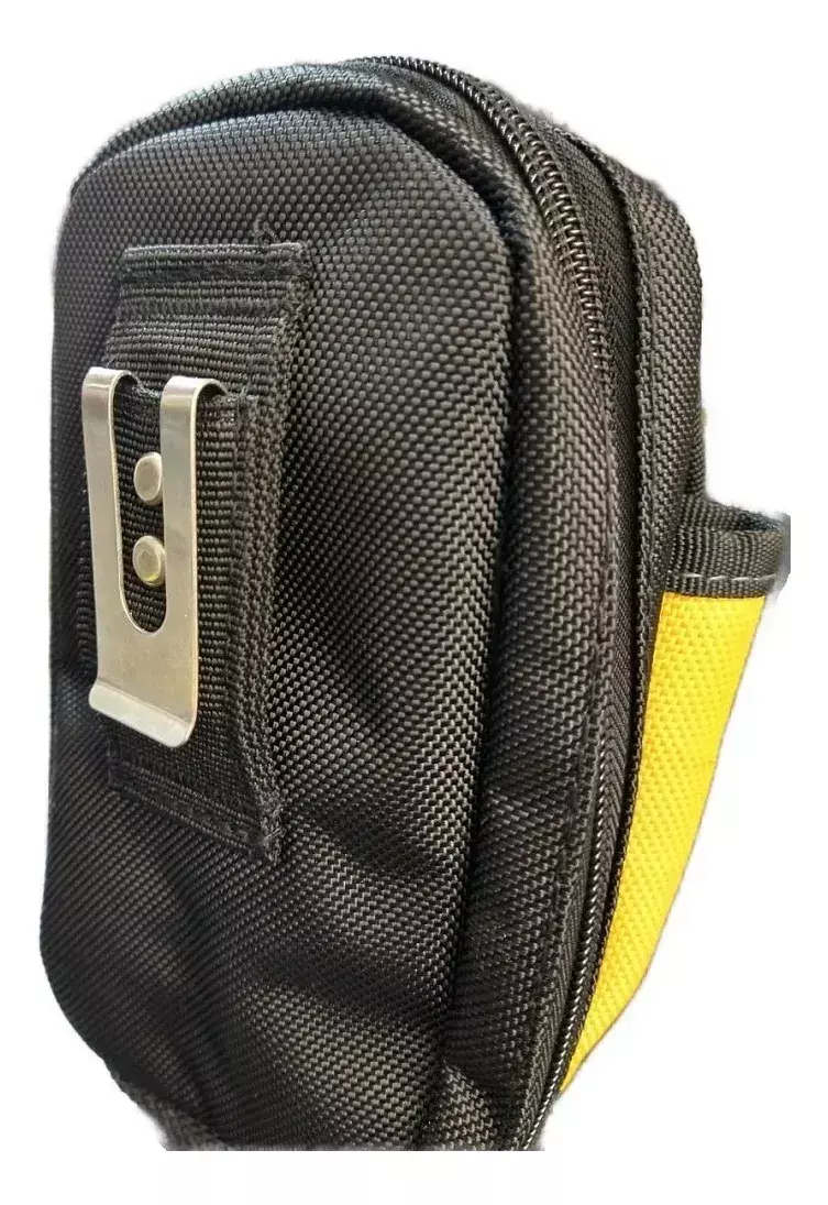 Seu design conta com compartimentos inteligentes que permitem armazenar desde ferramentas manuais até itens menores, como chaves, canetas e celulares. Além disso, possui bolsos com zíper, bolso de malha elástica e clip de metal para fixação na roupa, cinto ou avental, garantindo fácil acesso e mobilidade durante o uso.